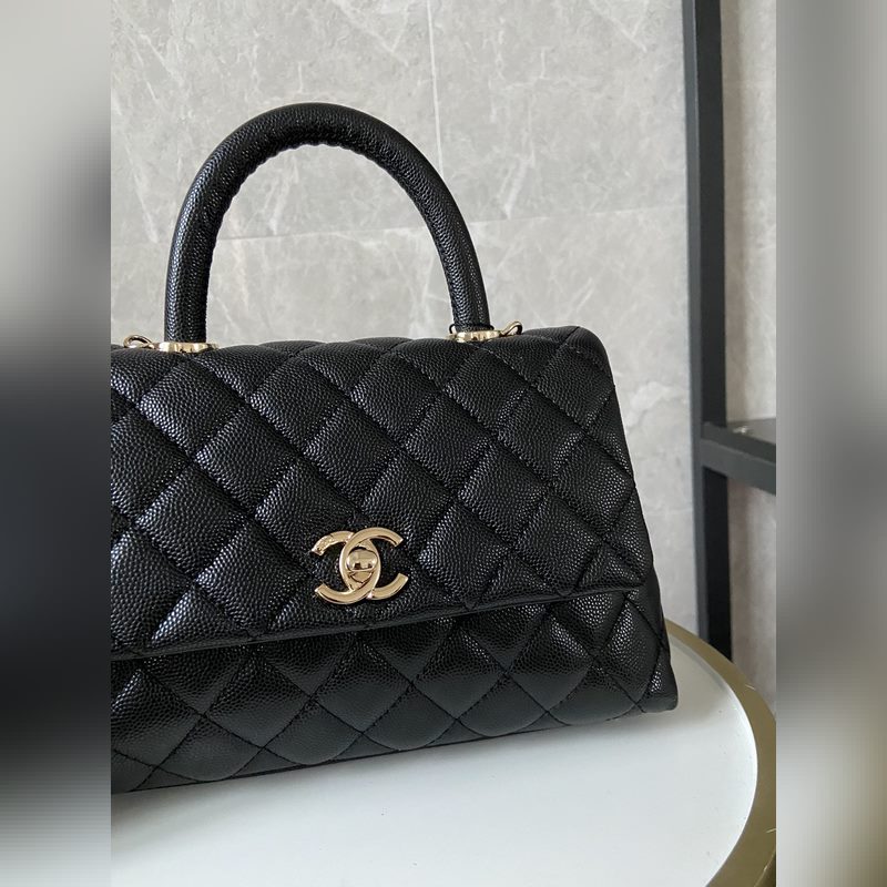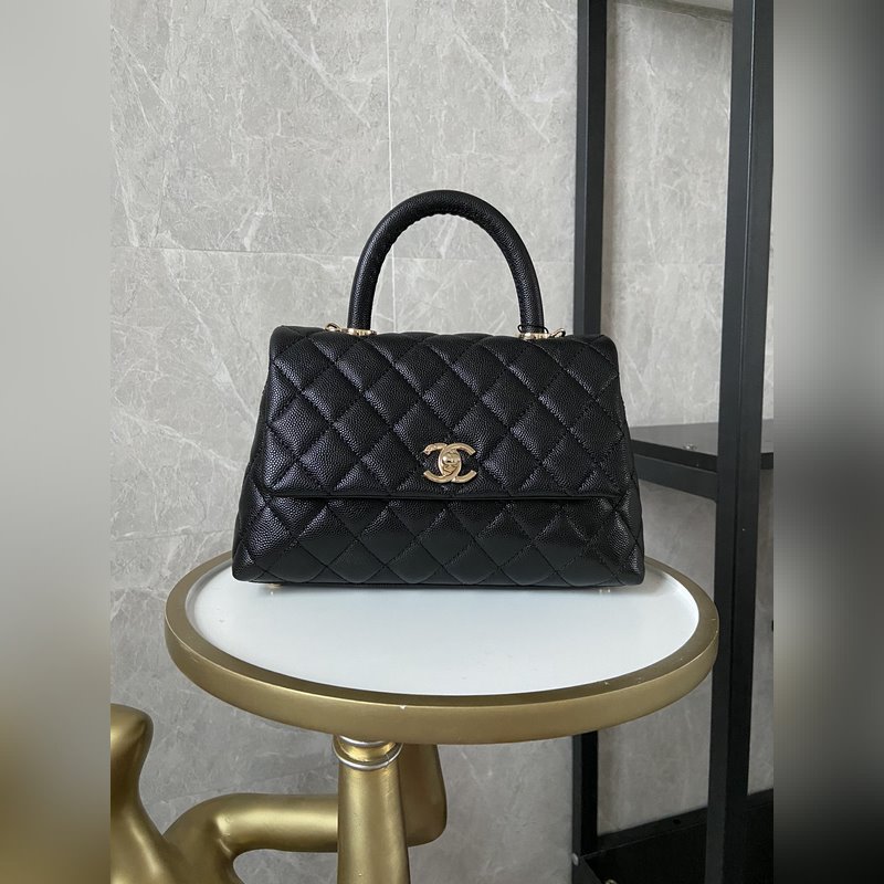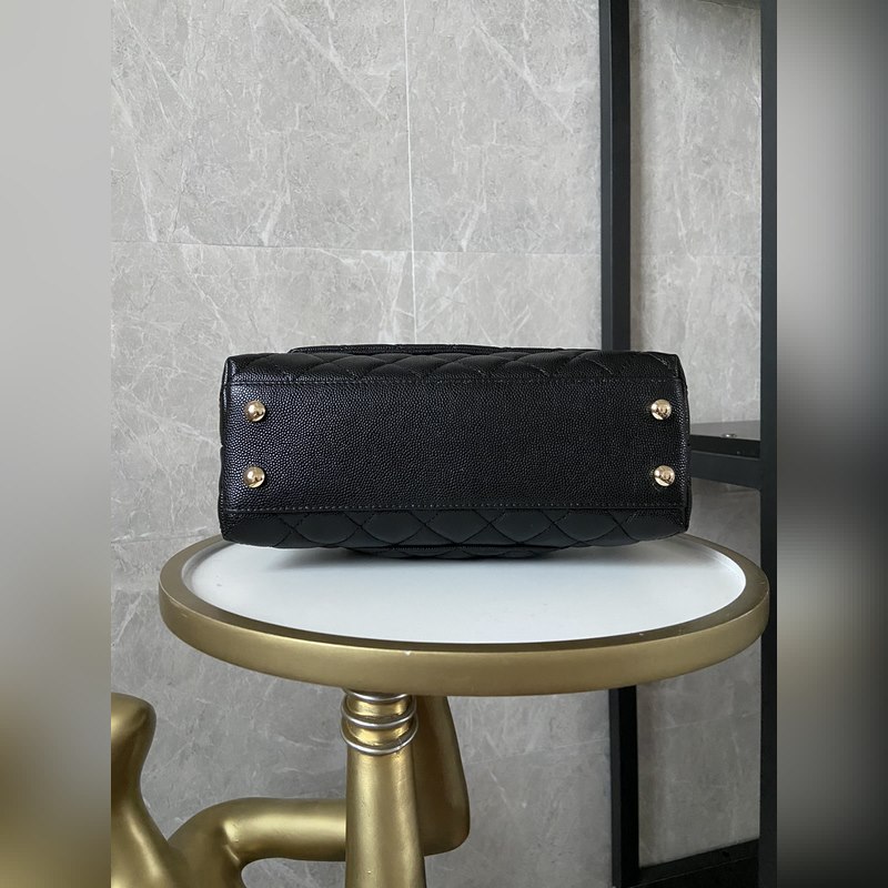 AS92990 최신 프리즘 무늬의 세밀한 엠보싱 송아지 가죽 소재의 블랙 볼 패턴 핸들 숄더 크로스바디 핸드백 미디엄 플랩 백 세밀한 엠보싱 송아지 가죽 소재 블랙 볼 패턴과 밝은 금색 금속 크기: 14x24x10