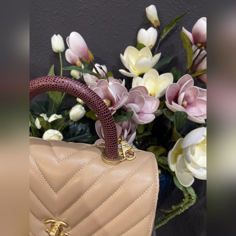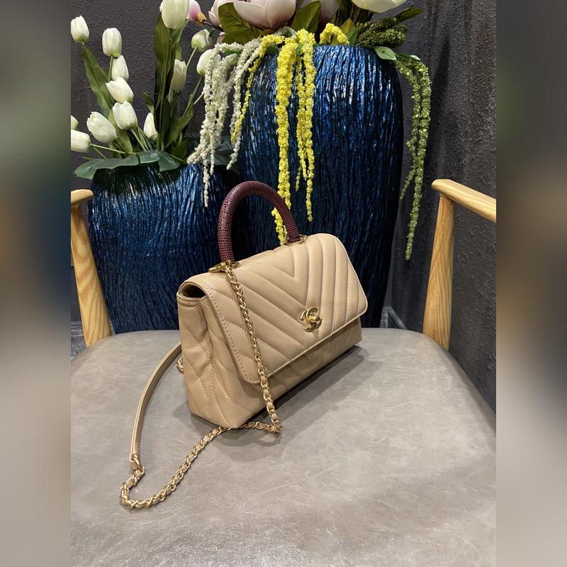 A92990 최신 V자형 세밀한 엠보싱 송아지 가죽 소재의 적갈색 도마뱀 무늬 핸들 숄더 크로스바디 핸드백 크기: 14×24×10cm