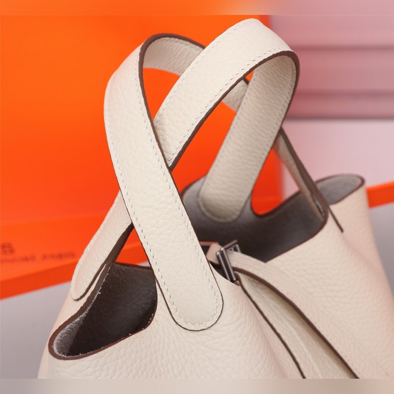 (유백색) 수제 밀랍 실 + TC 가죽 18cm 에르메스에서 독특한 존재감. ? 가볍고 튼튼하며 방수 기능이 있으며 실생활에 가까운 디자인 2002년 출시된 이래로 이 가방은 야채 바구니라는 별명을 얻으며 큰 인기를 끌었습니다. 보급형 아이코틴의 부족함을 논하기는 어렵습니다. -
