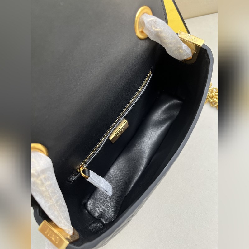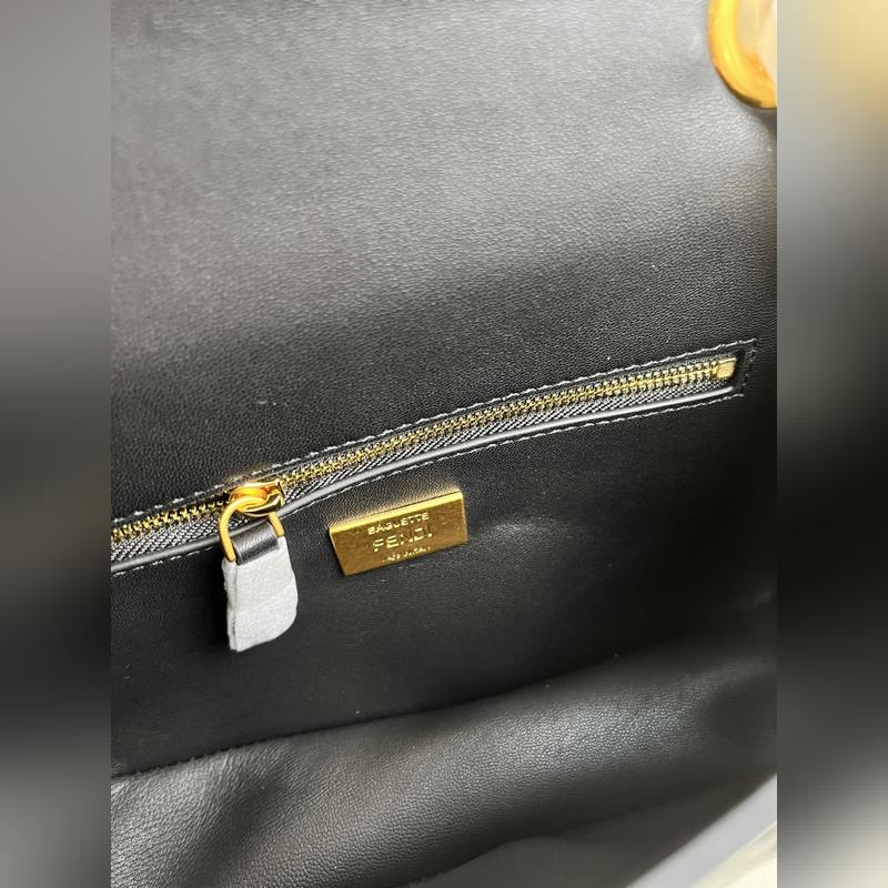 검정 바게트 중장형 체인 핸드백 블랙 나파 가죽 핸드백 더 자세한 정보 아이코닉 바게트 미디엄 체인 백 블랙 나파 가죽 소재 3D FF 패턴. FF 버클로 장식. 앞면 플랩에 자석 잠금장치 안감 내부에 여러 개의 수납공간 지퍼 포켓 빈티지 골드색 금속 장식. 손으로 들거나 어깨에 메는 슬라이딩 체인 숄더 스트랩 포함 소재: 겉감: 양가죽 안감: 양가죽 깊이: 7 길이: 24 높이: 14.5 아이템 번호: 7001