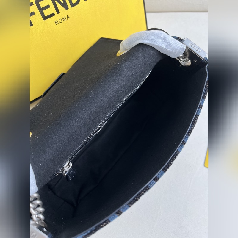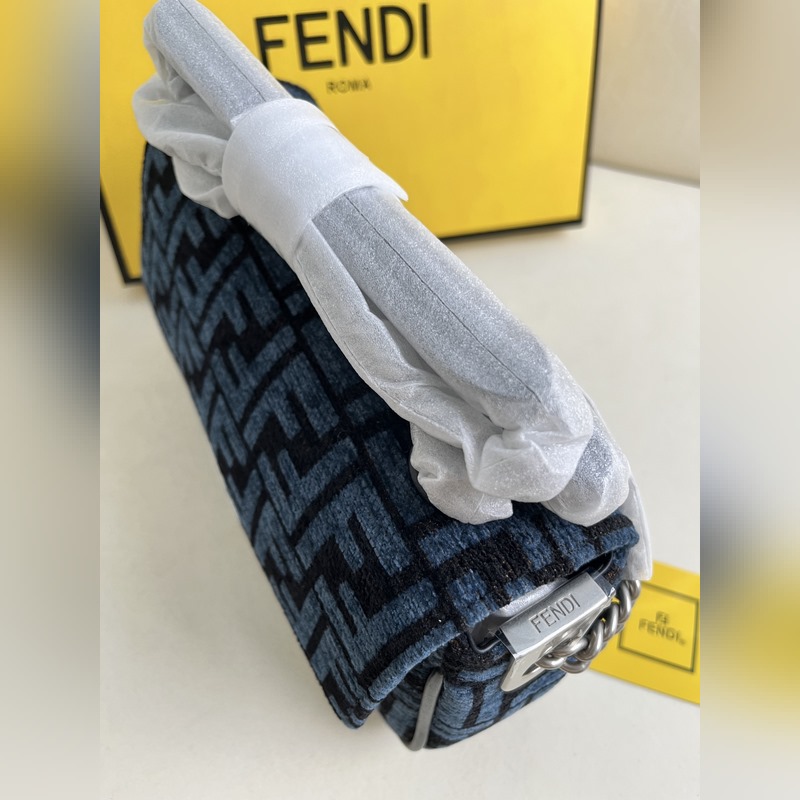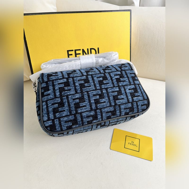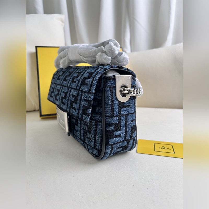파란색 천 아이코닉 바게트 미디엄 체인 백은 자카드 패브릭 소재에 아이코닉 FF 모티프가 특징입니다. FF 버클로 장식되어 있으며 앞면 플랩 마그네틱 스냅 버튼 내부 수납 공간 지퍼 포켓 빈티지 골드 컬러의 금속 장식 등이 특징입니다. 가죽 인서트가 있는 슬라이딩 체인 숄더 스트랩이 포함되어 있으며 손으로 들거나 크로스 바디 또는 어깨에 메고 휴대할 수 있습니다. 크기 24x14x7cm 모델 번호: 232