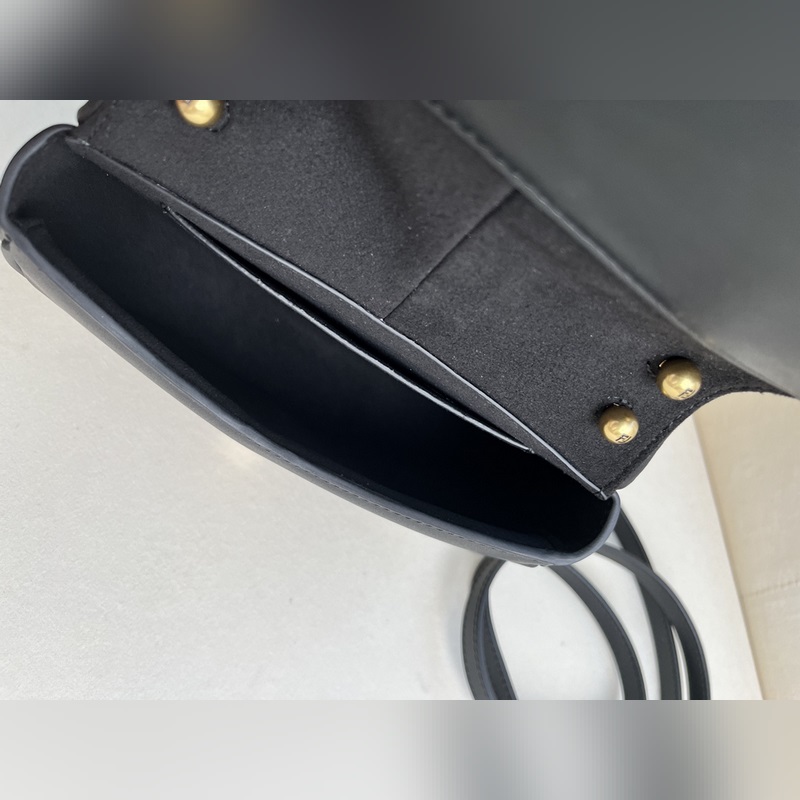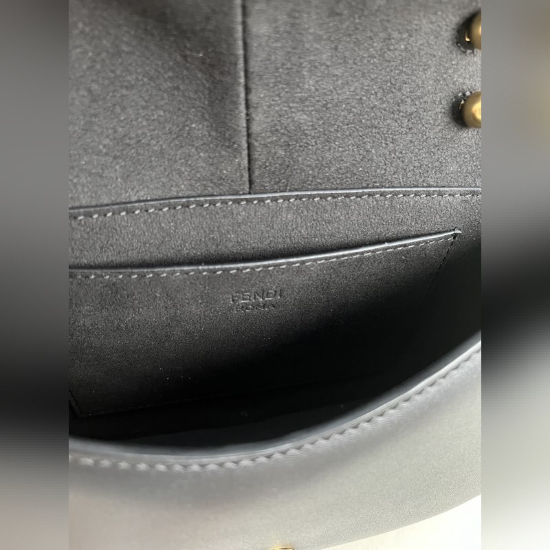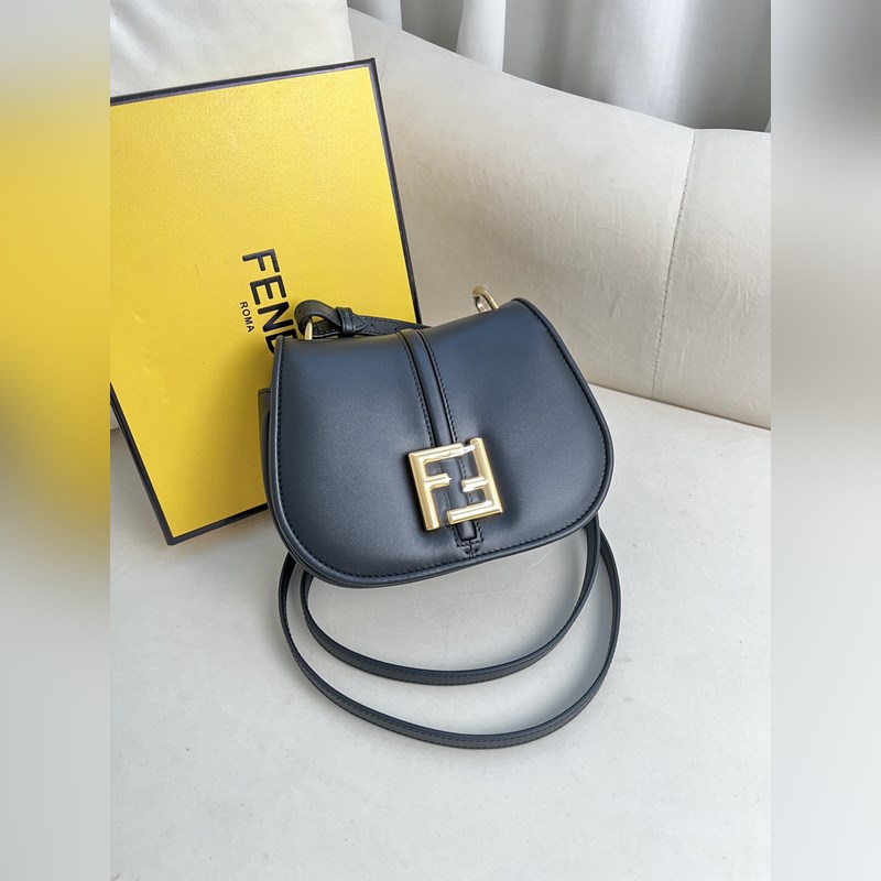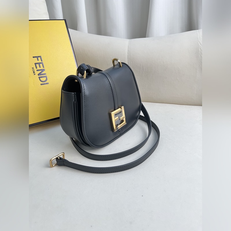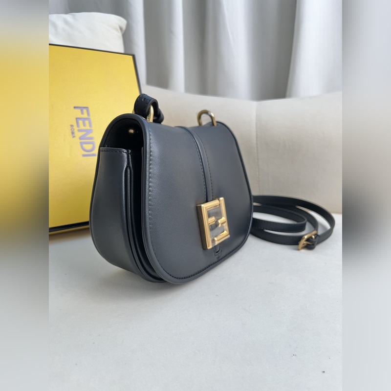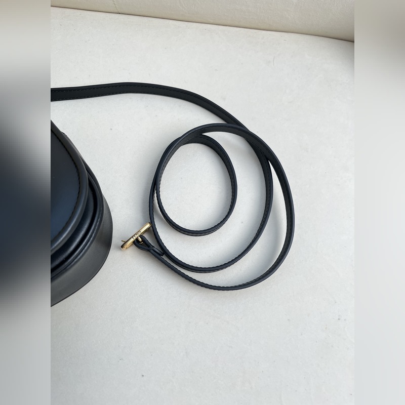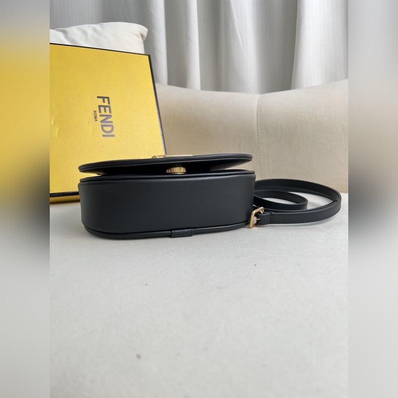 작은 검정색 FENDI 여성스러운 곡선 라인의 작은 검은색 가죽 숄더백.