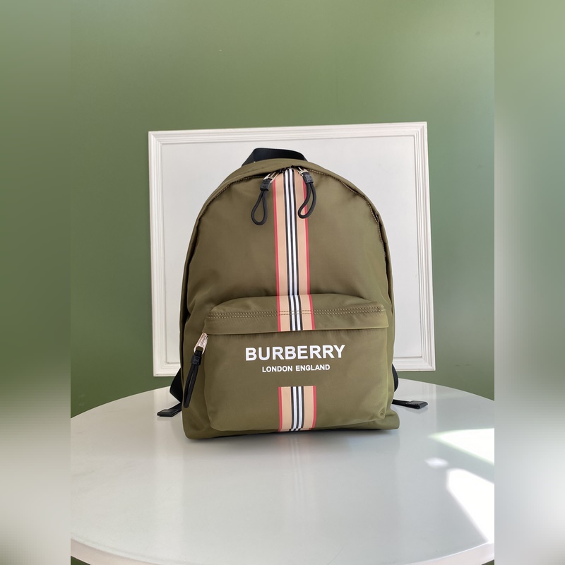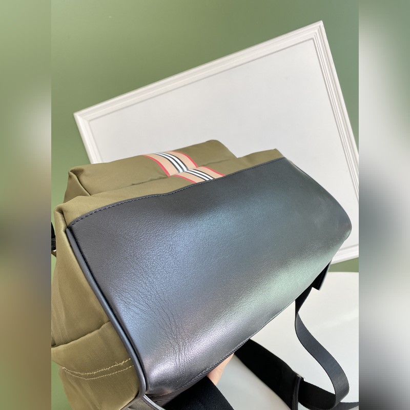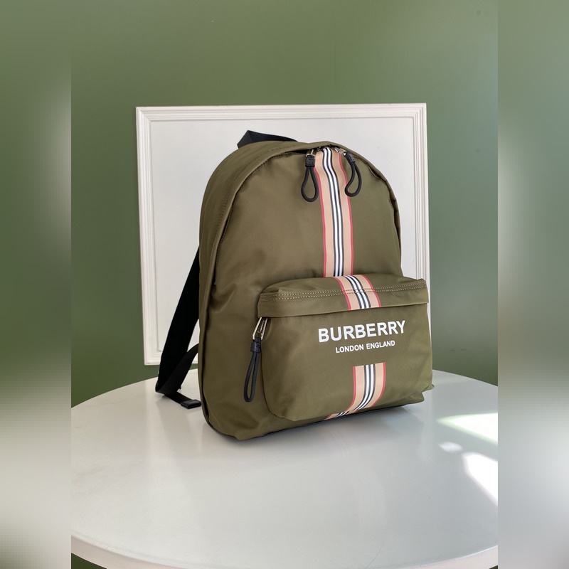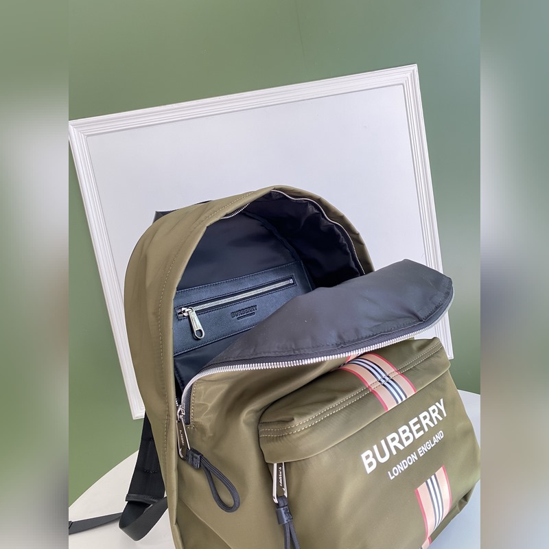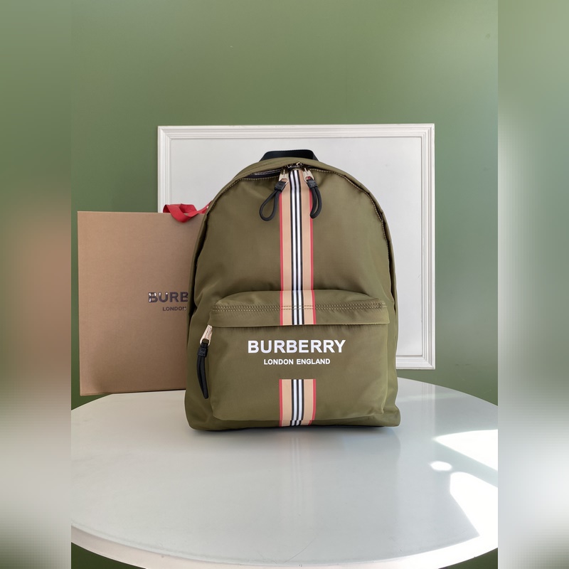버버리 새로운 방수 나일론 백팩 은 재활용된 어망 폐기물과 산업용 플라스틱으로 만든 지속 가능한 나일론 원단으로 만들어졌으며 새로운 소재 마감 처리 브랜드 로고와 상징적인 줄무늬로 장식되어 있으며 부드러운 가죽 트림으로 마감되어 있습니다. 30.5 x 14.5 x 42.5cm 아이템 번호: YK96181100